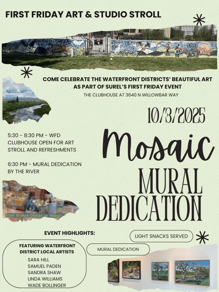 Come celebrate this unique public art and enjoy the work of some of our other Waterfront District artists on display in the clubhouse.